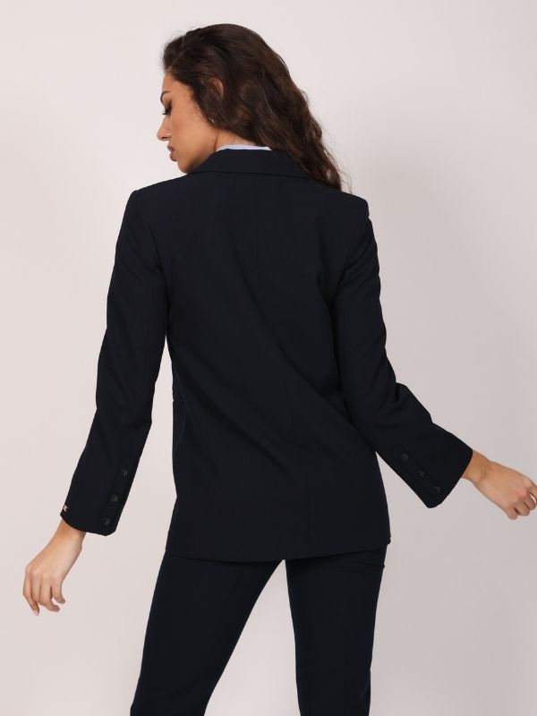Oversize sako sa špic reverom i klasičnom kragnom donosi moderan i upečatljiv izgled uz dozu ležerne elegancije. Produžena silueta pruža zavodljivu formu, dok dvoredno kopčanje naglašava strukturu modela. Dugi rukavi sa diskretnim dugmadima i paspul džepovi na bočnim delovima dodaju suptilan, ali efektan detalj. Sveden, ali izuzetno stilizovan, ovaj sako je idealan za veće veličine i lako se kombinuje sa različitim komadima za besprekoran look.