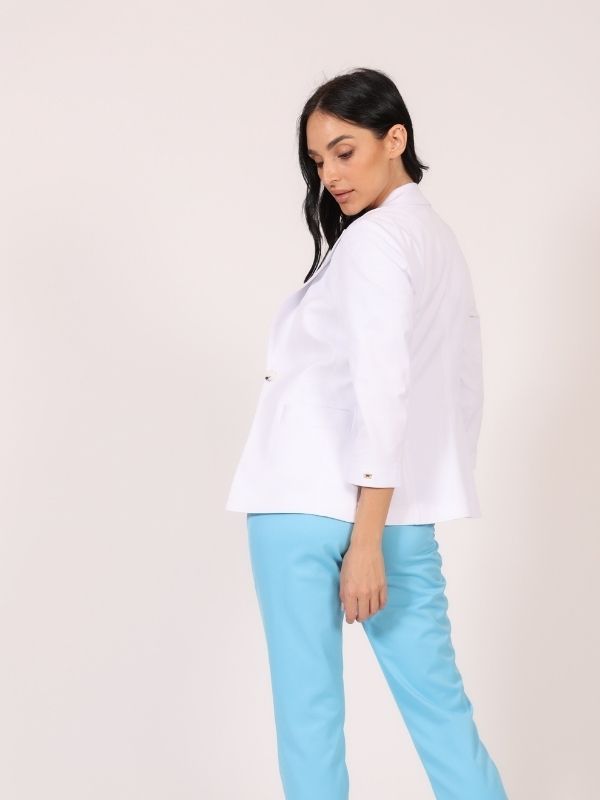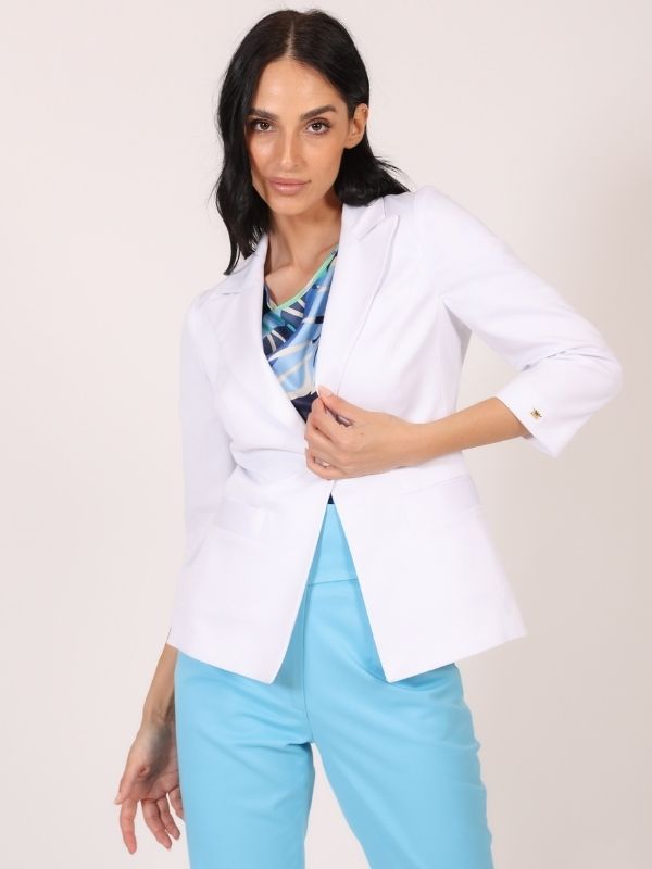 Sako snažnog karaktera i sofisticiranog kroja. Sako privlači pažnju svojom unikatnom konstrukcijom i modernim 3/4 rukavima, dok špic rever daje notu autoriteta i elegancije – savršen izbor za samouverenu ženu. Ukrasni štepovi na patnama dodaju dozu profinjenog detalja, a dugme s braon šarom unosi suptilan akcenat. Nosite ga uz komade iz nove kolekcije i postignite besprekoran, savremeni izgled.