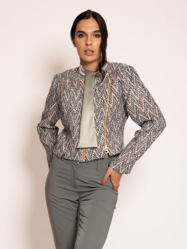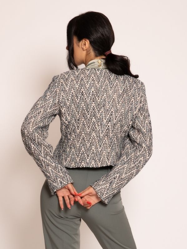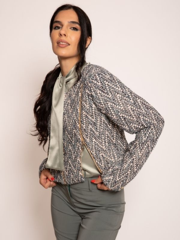 Sako od buklea u u maslinastim nijansama.