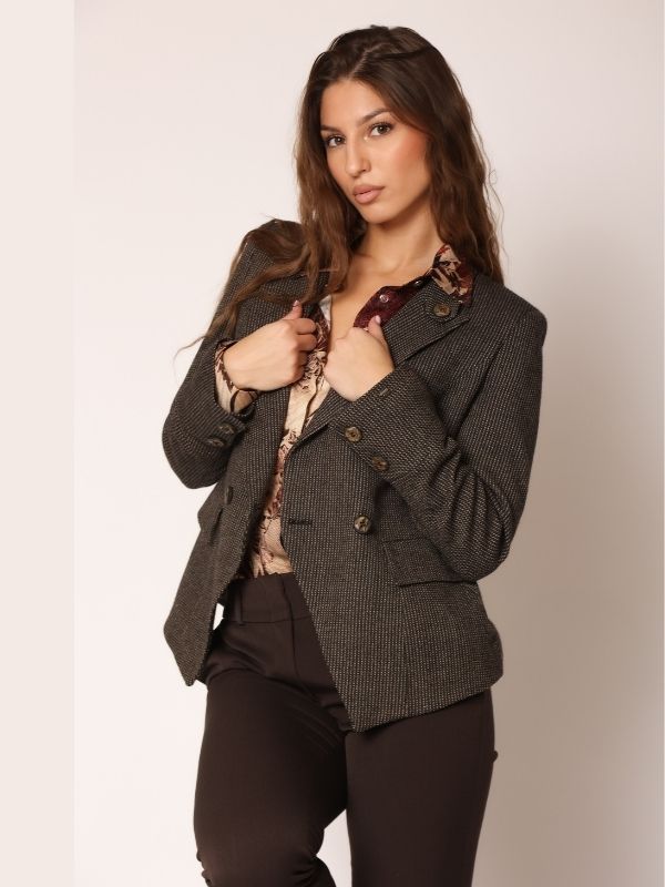 Sako od vune u prskanoj kamel boji.