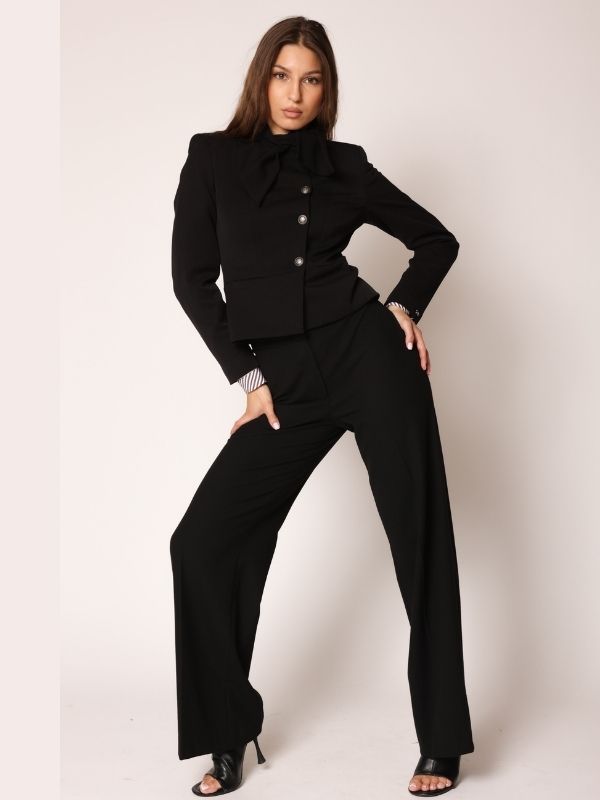 Sako od štofa u crnoj boji.