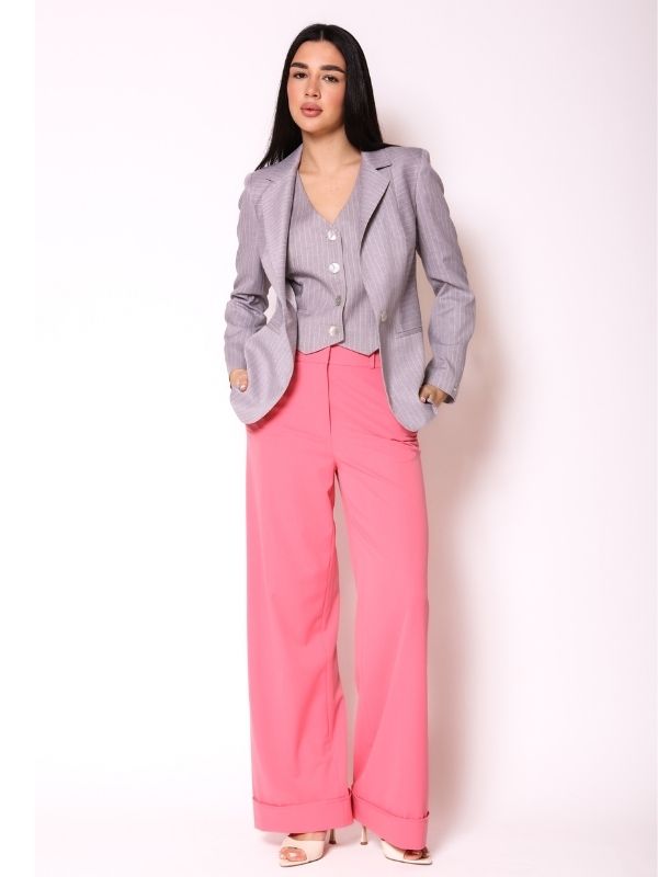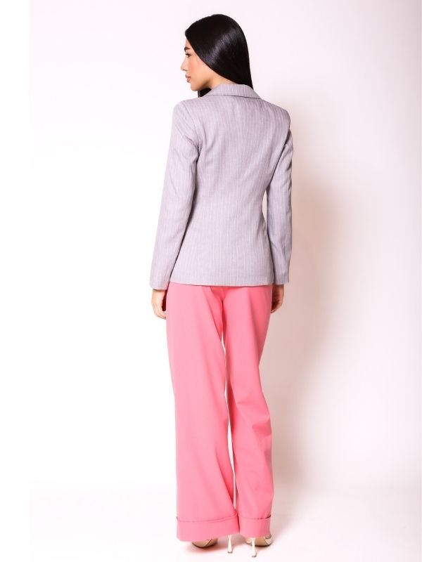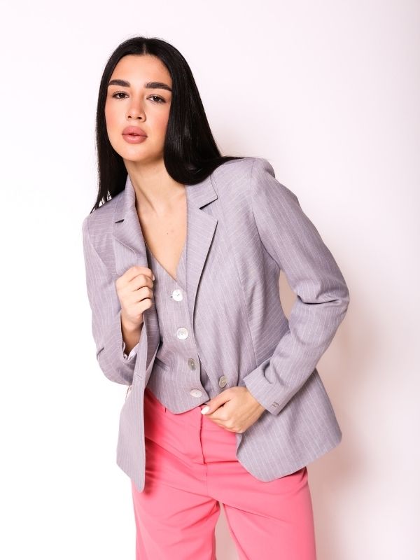 Klasični AMC sako sa jednim dugmetom, izrađen od kvalitetnog štofa, donosi sofisticiran i elegantan izgled. Dužina sakoa naglašava žensku figuru, pružajući savršen oblik i stil. Oboren rever i paspul džepovi na bočnim prednjim delovima dodaju detalje koji čine ovaj model posebnim, dok uzani rukavi zadržavaju klasičnu eleganciju. Idealno se kombinuje sa ostalim komadima iz AMC kolekcije, stvarajući vanvremenski look koji savršeno odgovara za svaku priliku.