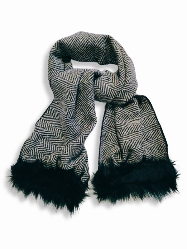 Šal u cik-cak dezenu sa krznom koje ga krasi.