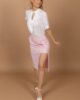 Kratka suknja u kombinaciji sa dužom suknjom, koja je ustvari veliki šlic, tako da su zapravo dve u jednoj. Ide fenomenalno uz sako DA45, ima istu obradu kao i spomenuti sako. Jedna malo avangardnija forma, sa dugmićima kao imitacija kopčanja.